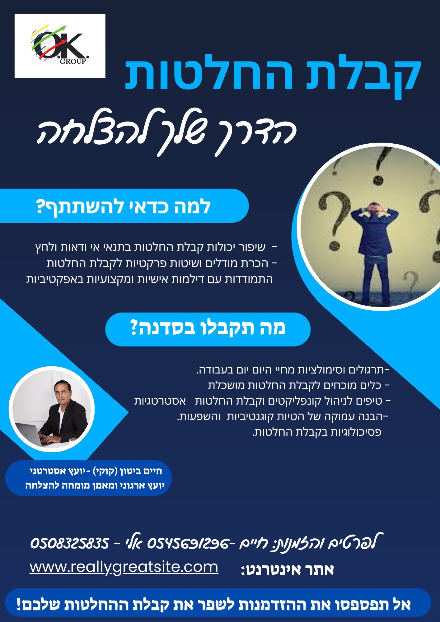 יועצים מקצועיים עם ניסיון עומדים לשירותך!